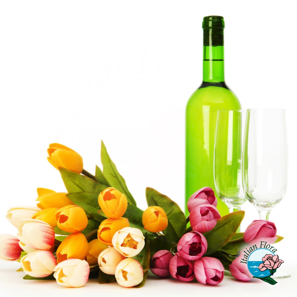 Home > Composizioni di Fiori online > Tulipani > Bouquet di tulipani e vino bianco